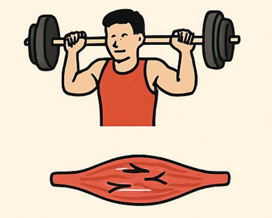 筋トレによって筋繊維は微細な損傷を受けます。その損傷を修復する過程で、以前より少しだけ太く強い筋繊維に生まれ変わります。この現象が「超回復」と呼ばれるもので、筋肉成長の基礎です。